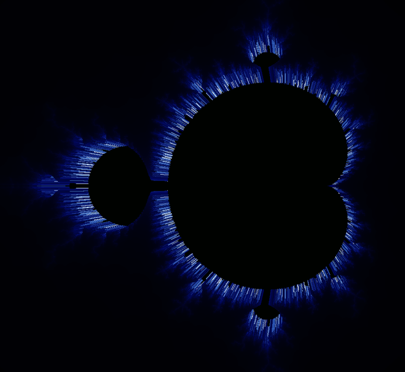 We wanted to experiment with rendering fractals in various ways. We initially wanted to focus on some sort of 3D representation of a fractal (different from a Mandelbulb) and ended up with some interesting renders. We ultimately settled on just making a traditional fractal renderer. Currently, it only supports the Mandelbrot set. However, this project is ongoing, and we'd love to ultimately support all sorts of fractals and allow users to control the color palette.