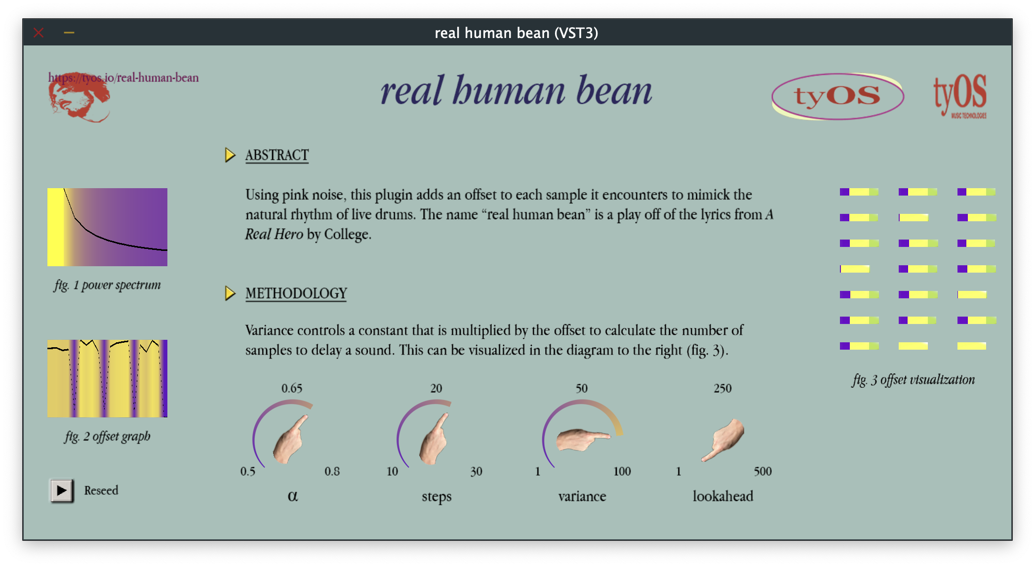 real human bean is an audio plugin that applies humanized offsets to a stream of samples, making the samples sound as if a person played them. It is ideal for channels that contain one drum part, such as a hi hat channel, snare channel, etc. The algorithm to generate offsets was implemented as described in this paper by Saara Malila.